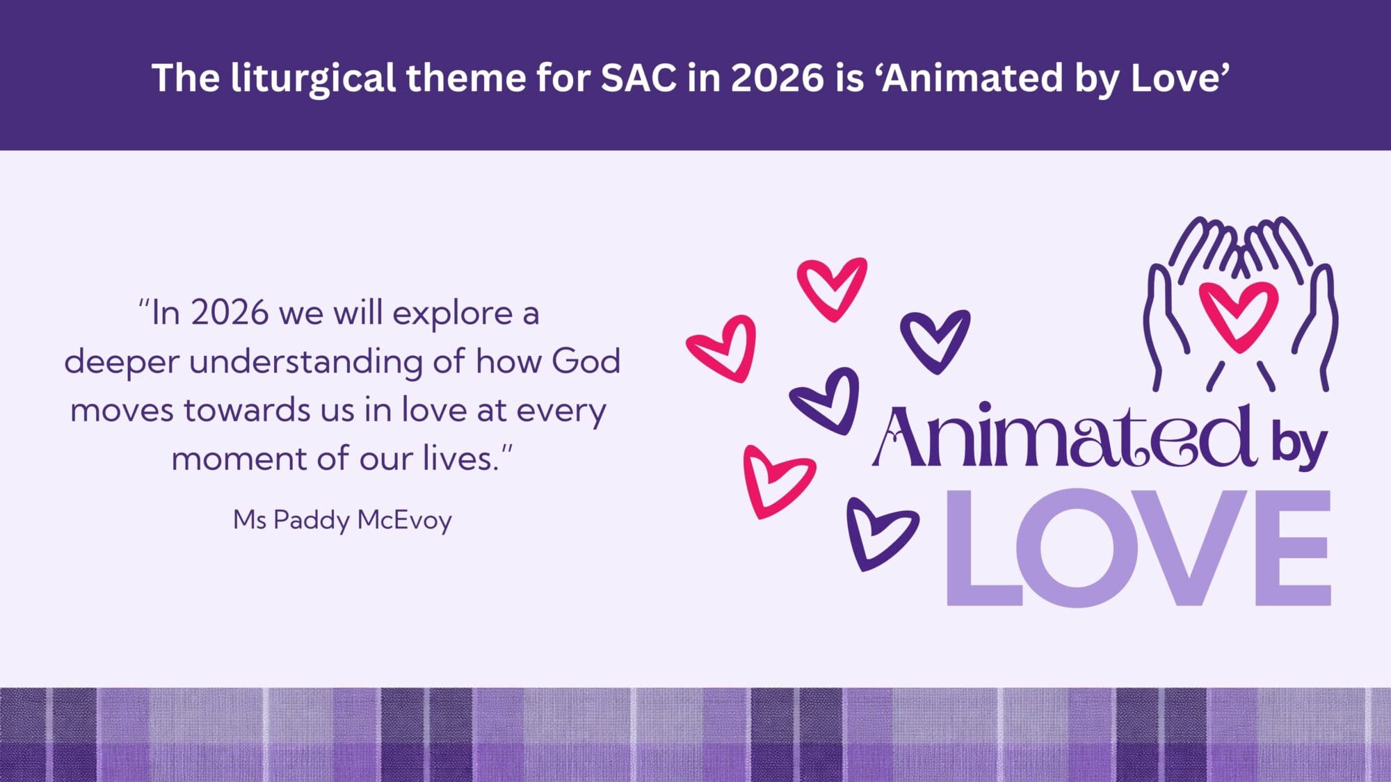 The liturgical theme for SAC in 2026 is Animated by Love. It’s a theme that will resonate strongly with our students. We hope to expand their thinking beyond the flowers on Valentine’s Day perception of love and explore a deeper understanding of how God moves towards us in love at every moment of our lives.