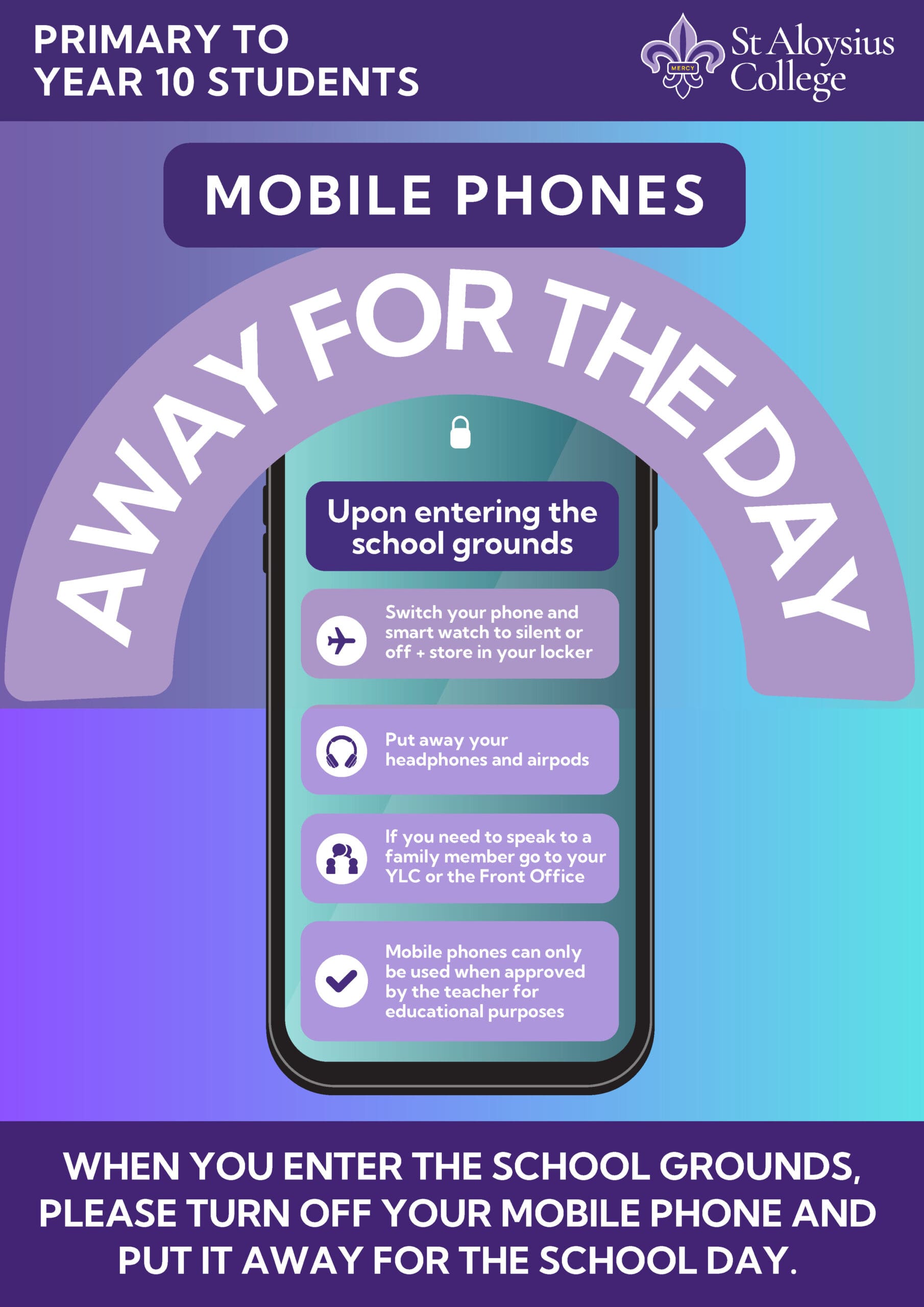 A reminder from 2026, the ‘Away for the Day’ mobile phone policy will apply from the moment students enter the school grounds until they leave at the end of the day.