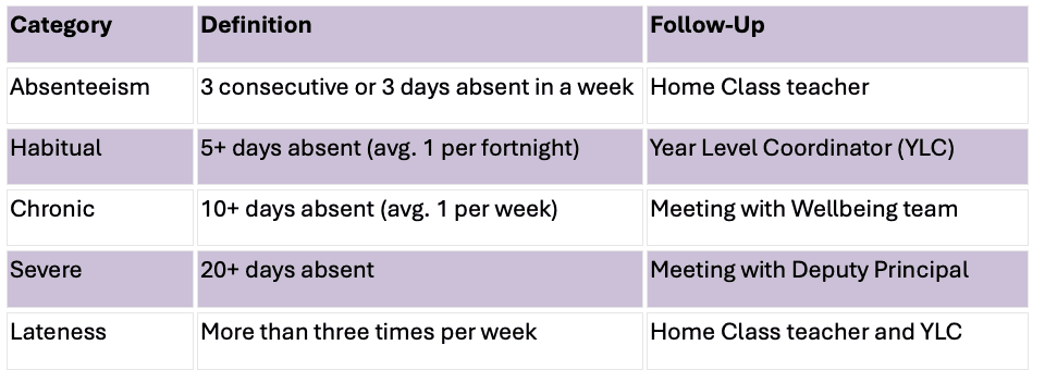 At St Aloysius College, we work in partnership with families to support regular attendance, as it is essential for learning, wellbeing, and engagement in our community. Research shows a strong link between attendance and achievement, so we take this responsibility seriously. We require 90% attendance and understand at times however, that students may not be well enough to attend school. We regularly monitor and support students who are repeatedly late or absent.