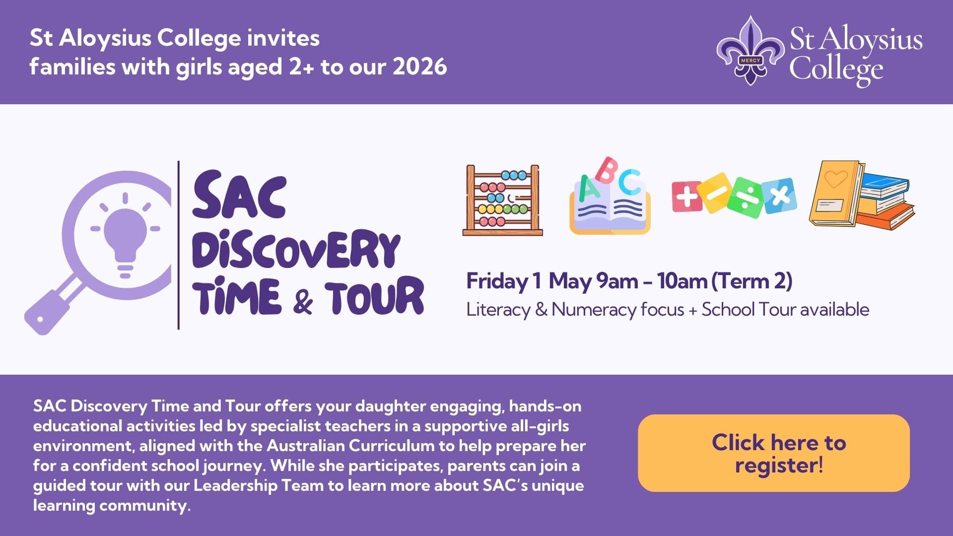Our 'Discovery Time & Tour' session is coming soon! Please share it with families and friends who might be interested. At SAC, we truly value when families share their experiences.
