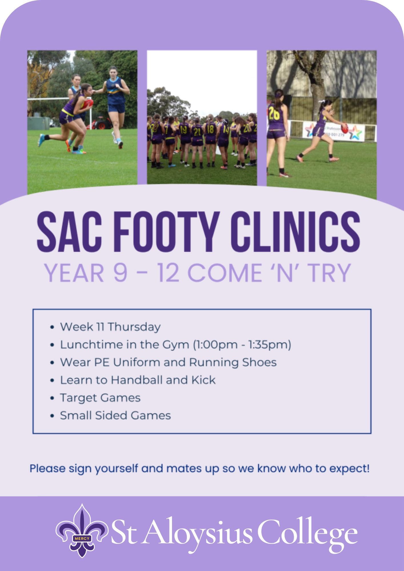 Lunchtime Footy Clinics for Year 9-12 Students!