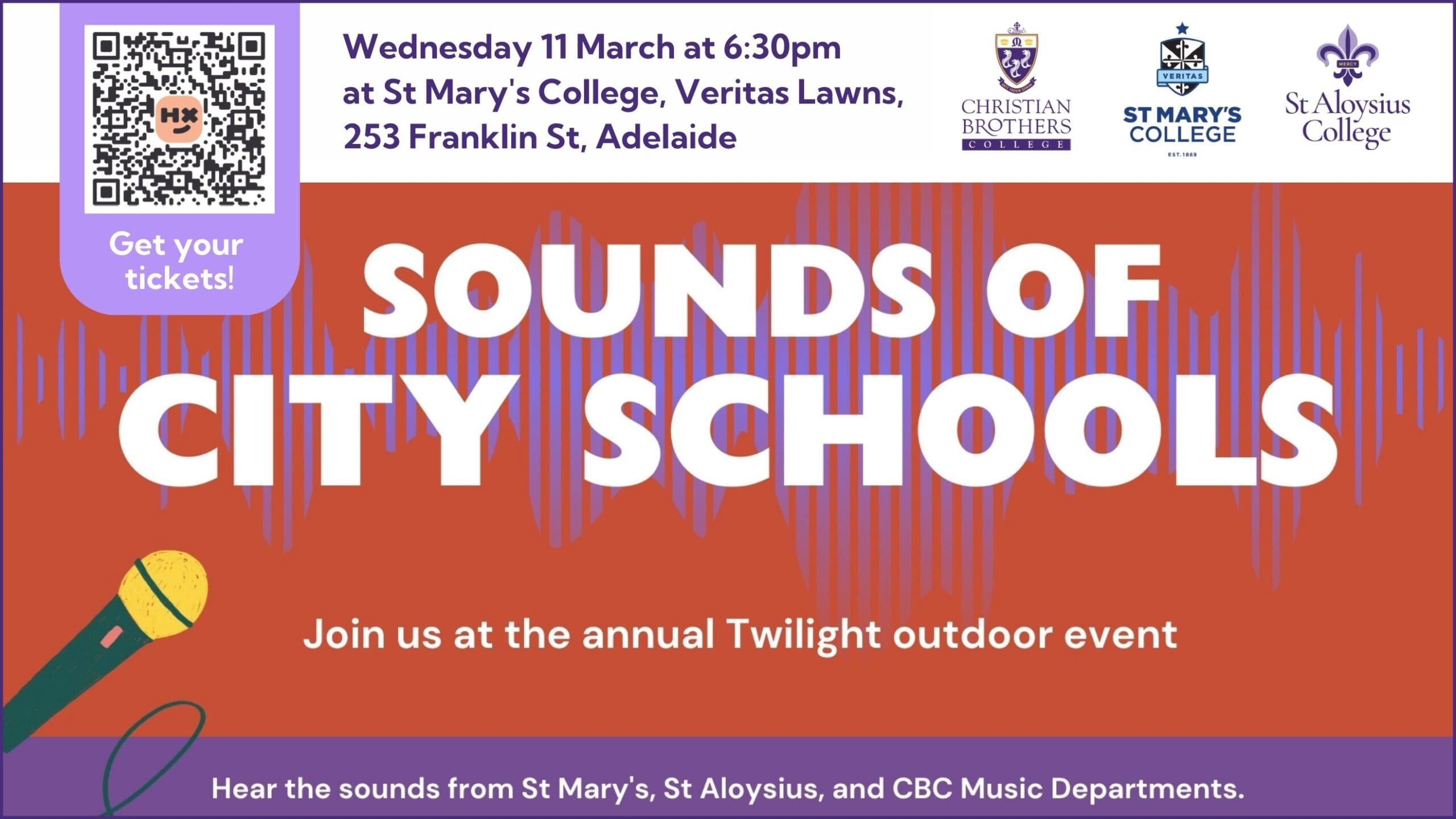 Join us for the 2026 Sounds of City Schools concert co-hosted by CBC, St Mary's College and St Aloysius College Adelaide at 6.30pm on Wednesday 11 March at St Mary's.