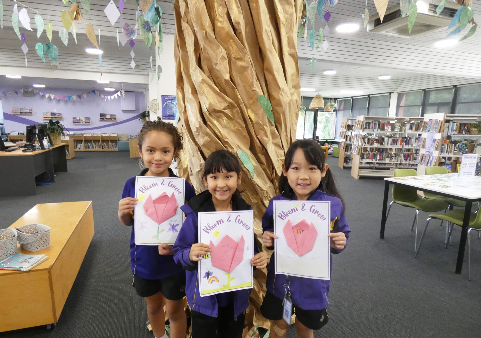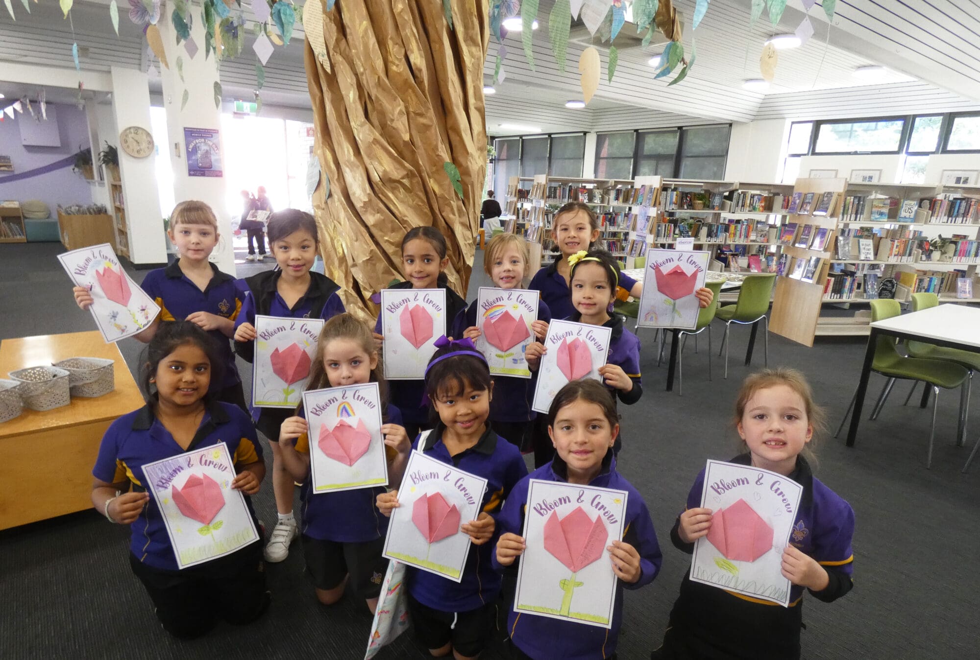 Year 2 students celebrating International Women’s Day through the library’s “Bloom and Grow” activity 🌸