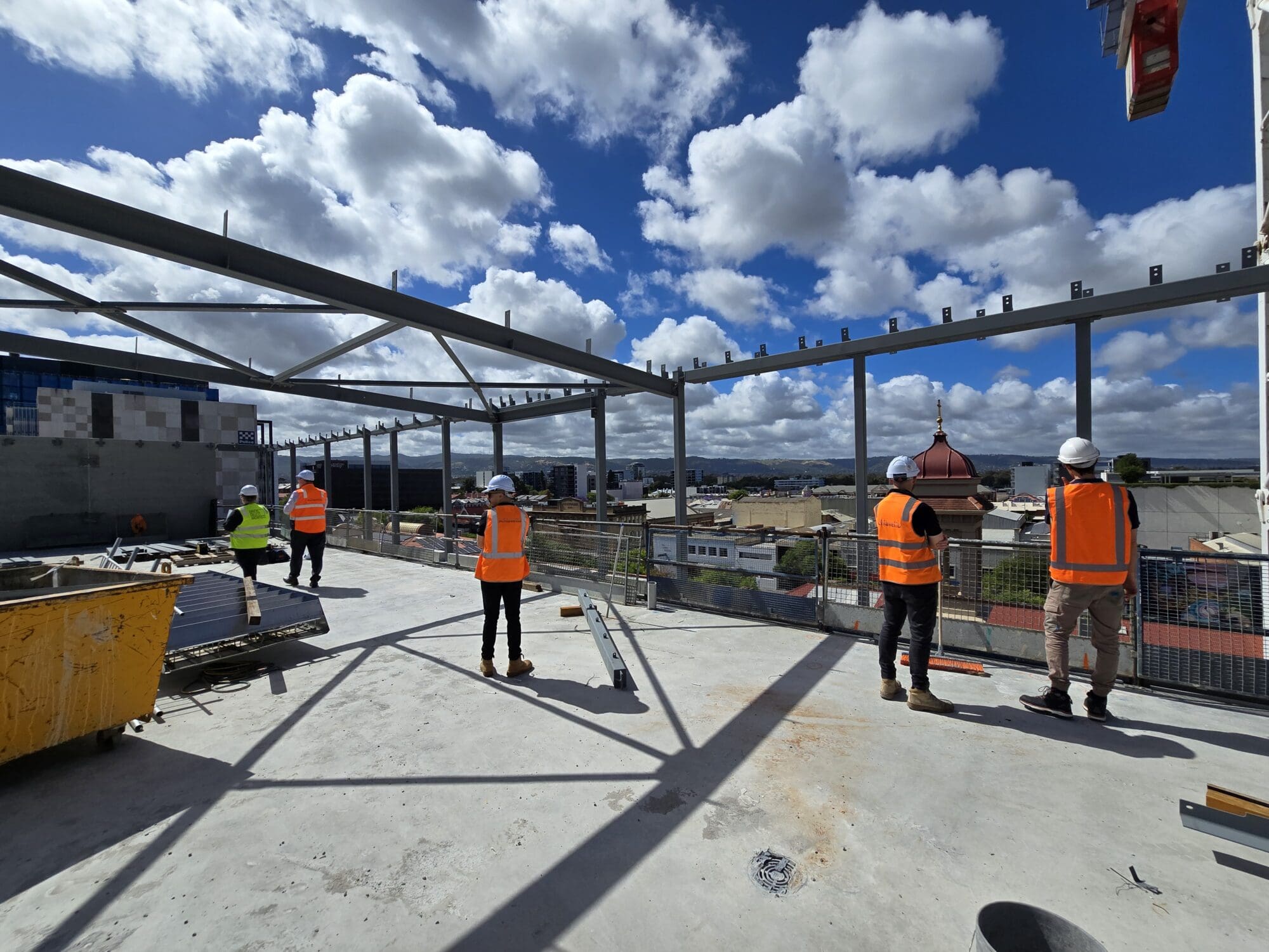 It has been a productive last few weeks on site as we have officially “topped out” the new Dunlevie Building with the rooftop slab completed last week. It is quite the view from the top floor and we’re sure the rooftop play space and terrace areas will be a favourite amongst students both for learning and break times.