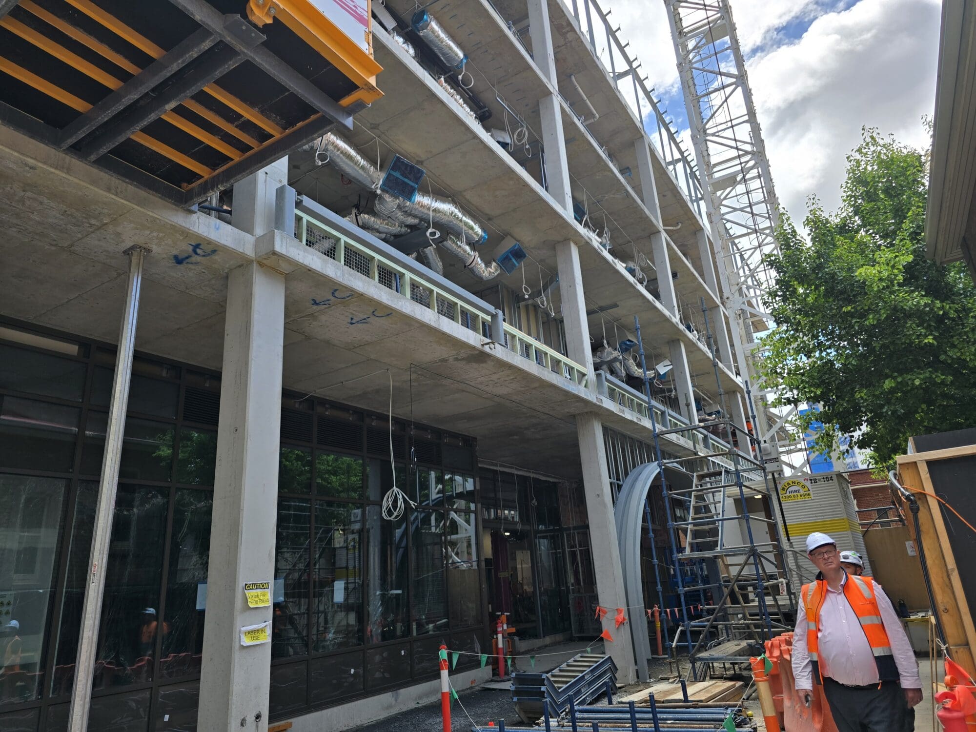 Over 40 concrete trucks put the foundations in place at the end of Week 2. It was a very long day for the construction team, but provided our community with a great sense of the scale of the new building. SAC is very grateful for the excellent communication and ongoing flexibility of the Schiavello team. One of our recent graduates, Caitlin Surynt (Class of 2024), who is studying a Bachelor of Construction Management, is working part-time for Schiavello on this project.