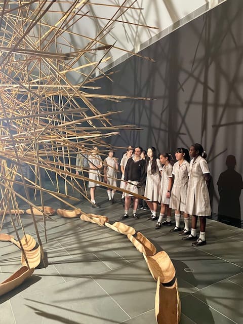 Students were struck by the scale and ambition of many of the pieces. Entire rooms were transformed by immersive installations, including large multi-screen digital artworks and impressive sculptural displays that invited viewers to step inside the artists’ stories and perspectives. The experience offered students a unique opportunity to see how contemporary First Nations artists are pushing creative boundaries and using new technologies to express powerful cultural narratives.