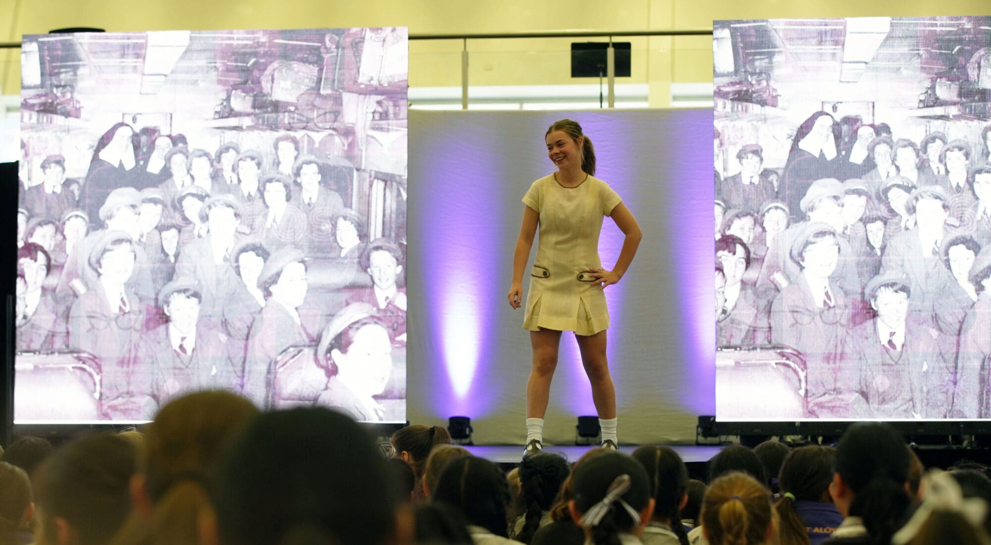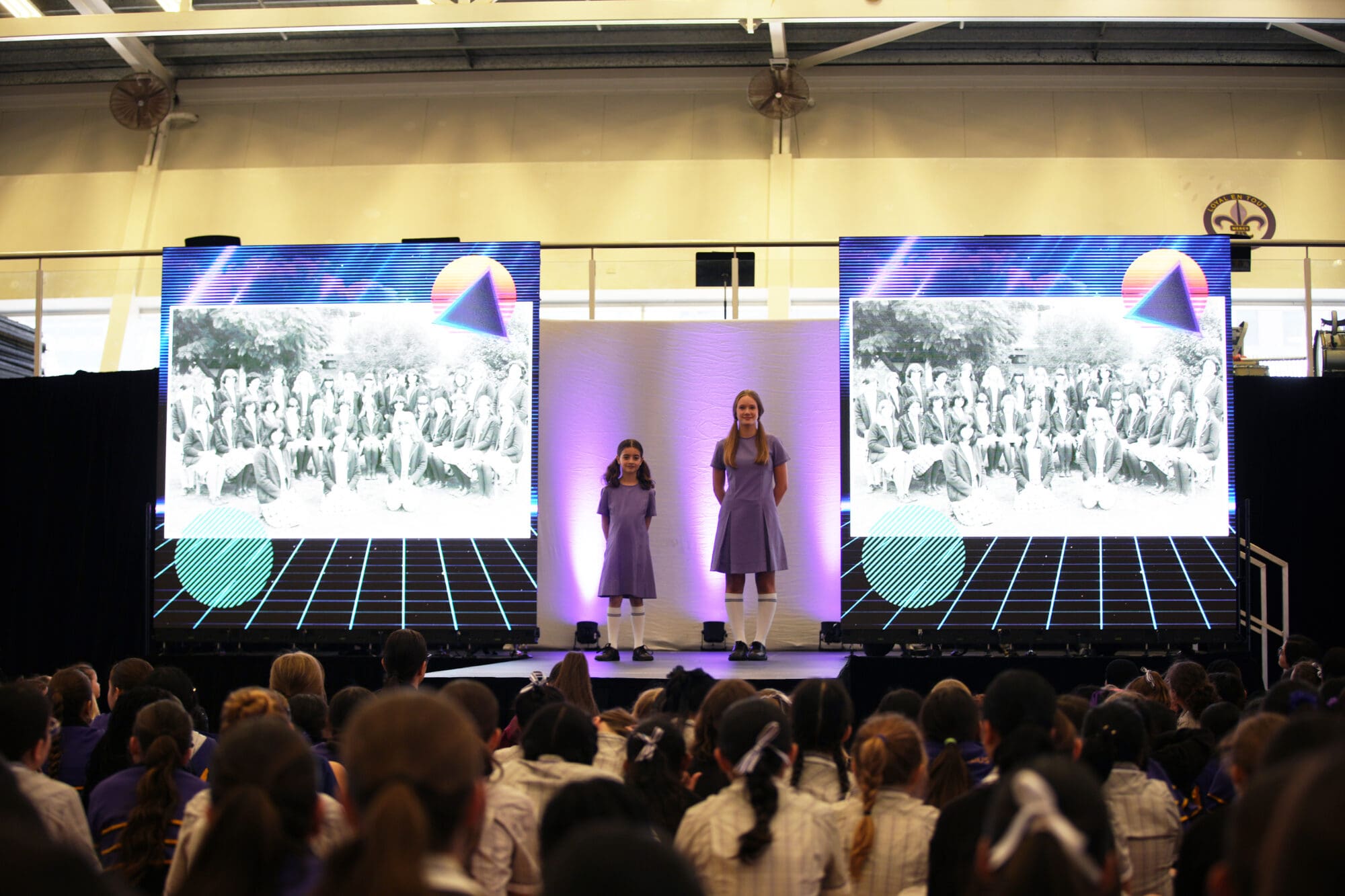 MCs, Liliana B and Haylee B announced, “Wear it your way, purple for every season!” and the 2026 St Aloysius College transeasonal uniform was revealed.