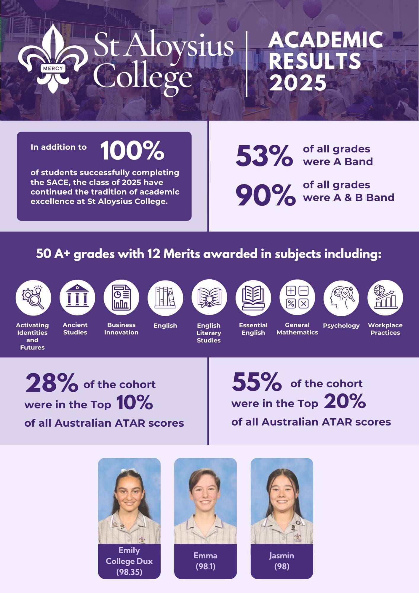 St Aloysius College proudly celebrates the academic achievements of the Class of 2025, whose Year 12 SACE results reflect dedication, perseverance, and a strong commitment to learning.